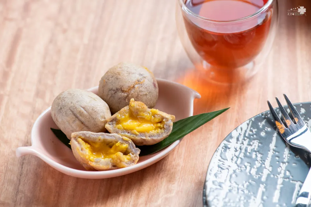光滑細膩的醃漬卵黃流沙,滑順綿密的口感加上輕巧的甜,滋味完美,狂野的芋香侵襲嗅覺,濃郁不膩的甜讓整體滋味更顯得立體。
