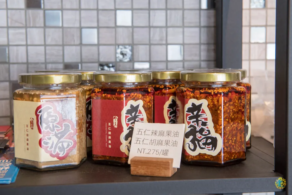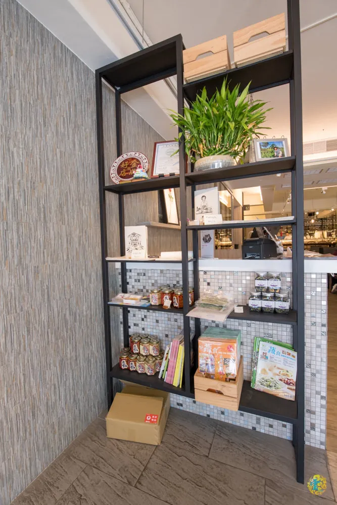 櫃台旁的架上,擺放小農植物的相關商品與金牌好店的獎牌。對於小農植物(五仁果油、香茅與杭菊茶等等)有興趣的,可以直接向櫃台諮詢購買。