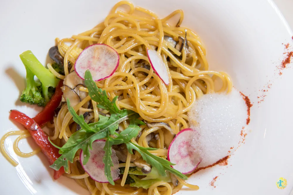 炒麵與蔬食不同程度的嚼勁,帶來多層次的豐富口感,配合特別的調味,這美味令人難忘。