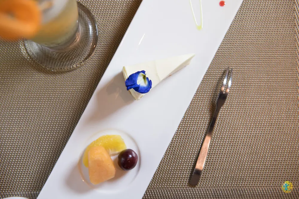 甜點是招牌生起司蛋糕與季節水果。季節水果好吃鮮甜。招牌生起司蛋糕更是一絕,不添加人工香料,只靠低溫定型,起司高雅馥郁的香甜氣息,吃進口中卻散發出淡淡的檸檬芳香,酸甜交錯構成一幅小小的酸甜味道百科,饒富趣味。下層的鹹餅皮,讓味蕾再次轉了個彎,這味道的厚度令人激賞。店家另有提供宅配服務。
