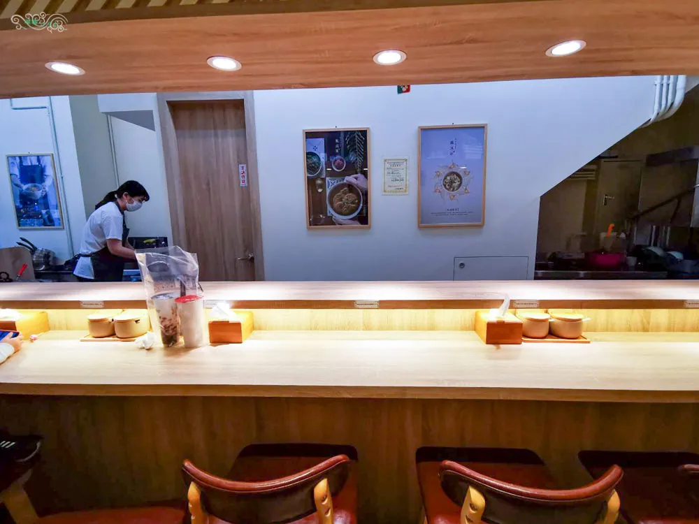 龍涎居桃園中華店就在桃園中華路上,知名建案國泰賦都的一樓,鄰近桃園火車站商圈,逛街購物肚子餓了來龍涎居祭一祭五臟廟吧。店內位置不多大約十個位置,皆以吧台形式呈現,整體以原木與白牆做搭配,櫃台以白色磚牆壁紙做為空間識別,開放式廚房以白牆與白色日光燈打造明亮平靜的視覺感受,提升空間的舒適度,用餐區則是利用原木與暖色系投影燈營造溫暖舒心的氛圍,店內動線流暢明確,店內空間的俐落感十足。