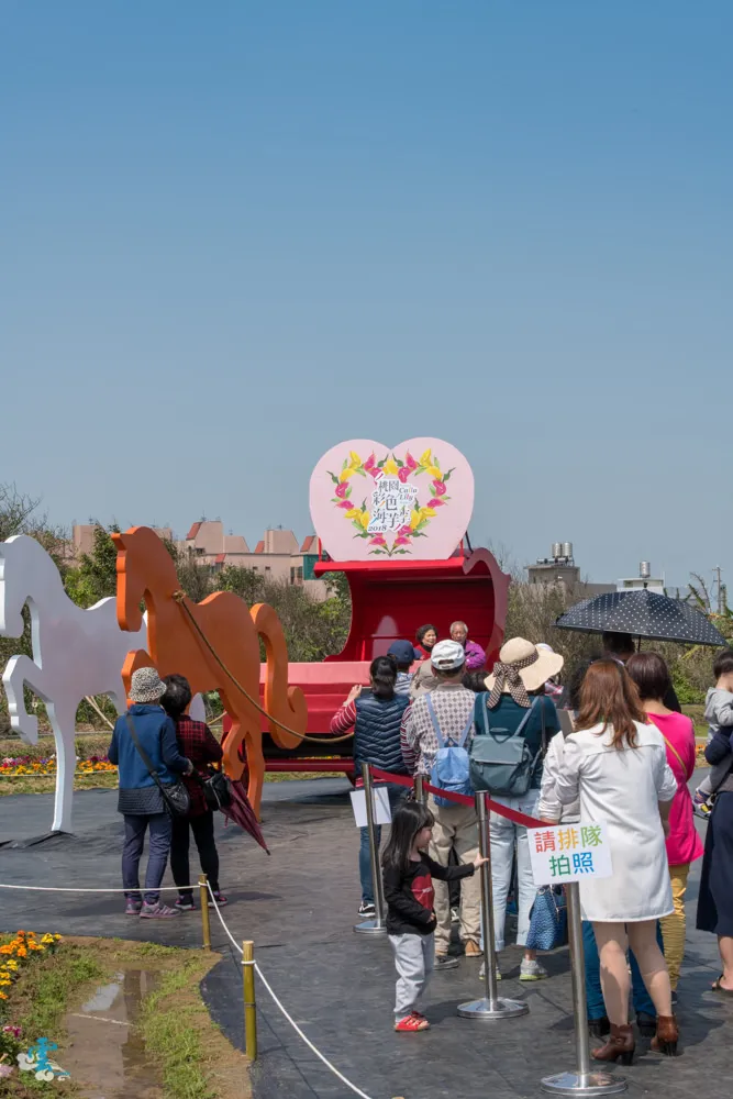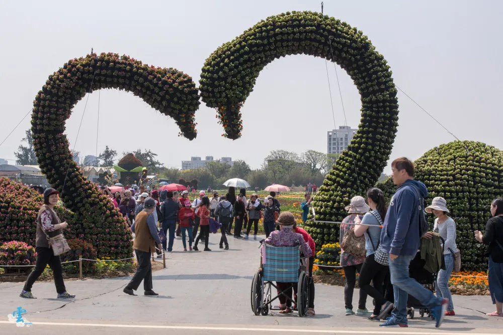 展區內不少花卉裝置跟花田競賽,都成為民眾爭相排隊的景點,大家都很有秩序。現場也有不少外國遊客來訪,也都很守秩序。