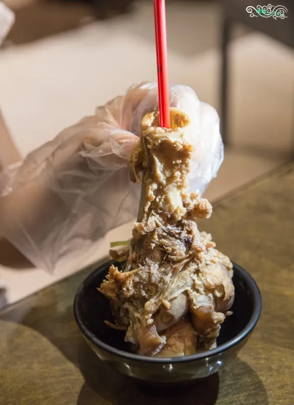 用湯匙將湯裝入大骨中~用吸管攪拌一下