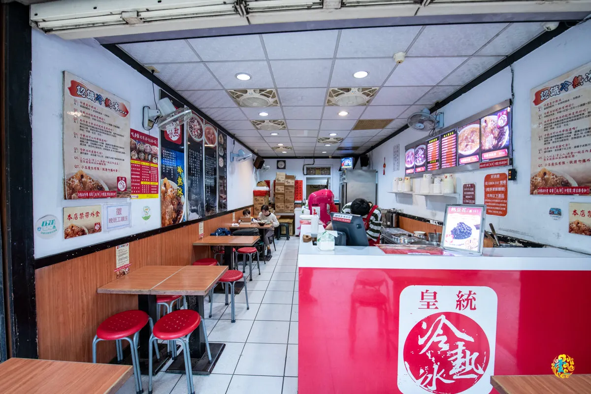 在桃園提到冷熱冰,應該都是說位在桃園縣府路上的這間皇統冷熱冰吧,紅白配色的招牌十分醒目,門口就有機車停車格,對面路邊也有汽車停車格,不然附近也有府前公有停車場,停車不會是太大的問題。很傳統的用餐空間,潔淨明亮,右邊是櫃台,左邊是用餐區,店內共有5張4人桌。凌雲下午三點多來,店內大多是外帶客居多。