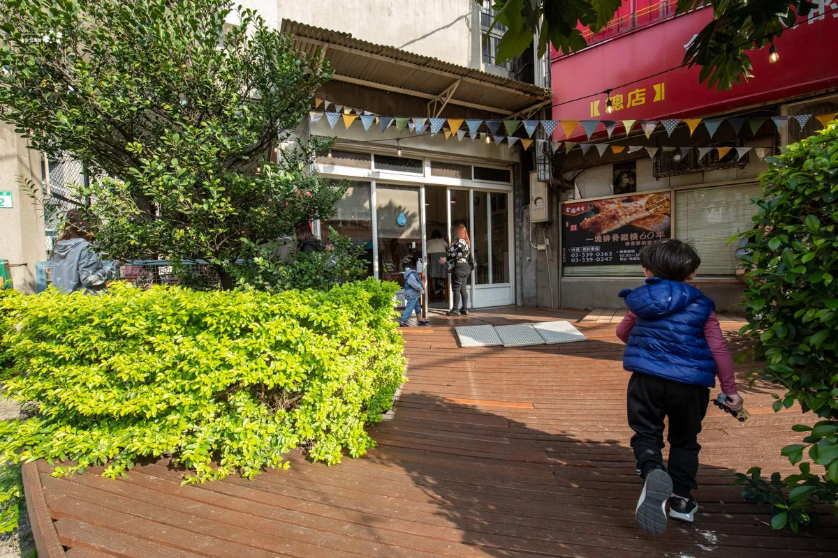 店門口有一塊整理過的小小庭院,一旁有候位區,來的時候記得先填寫候位表,店家會依序叫號。這次前來大約等了15分鐘,在這期間,小凌雲在庭院中玩的不亦樂乎,女王坐在候位區歇息,享受陽光撒落的悠閒,所以等候的時間其實不會太無聊。