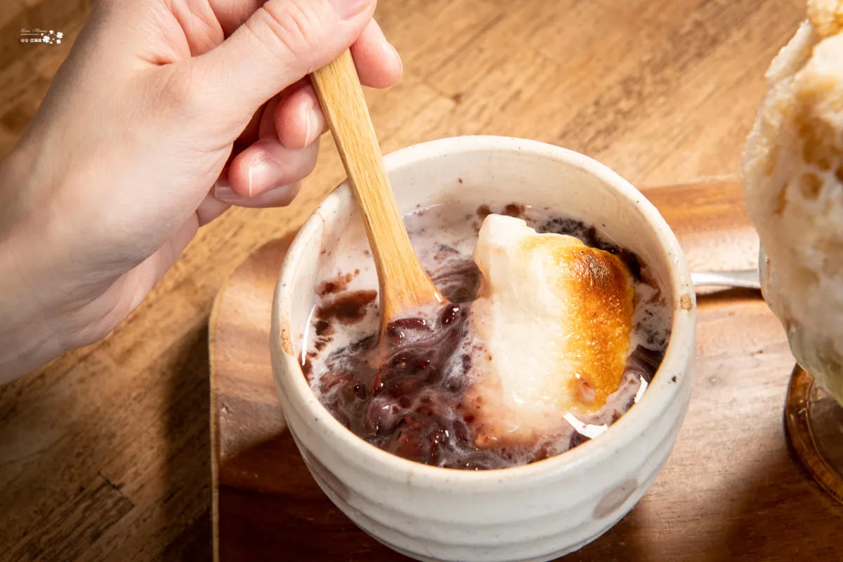 香濃的紅豆紫米,滋味飄香,帶點焦香味的烤麻糬,讓嗅覺多了點層次,不同程度的甜,加上外脆內軟濡的口感,組合出難忘的美味。