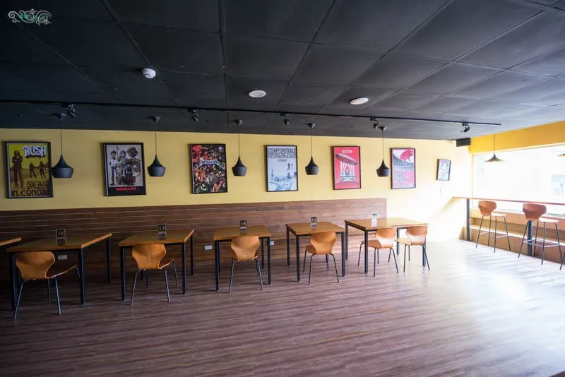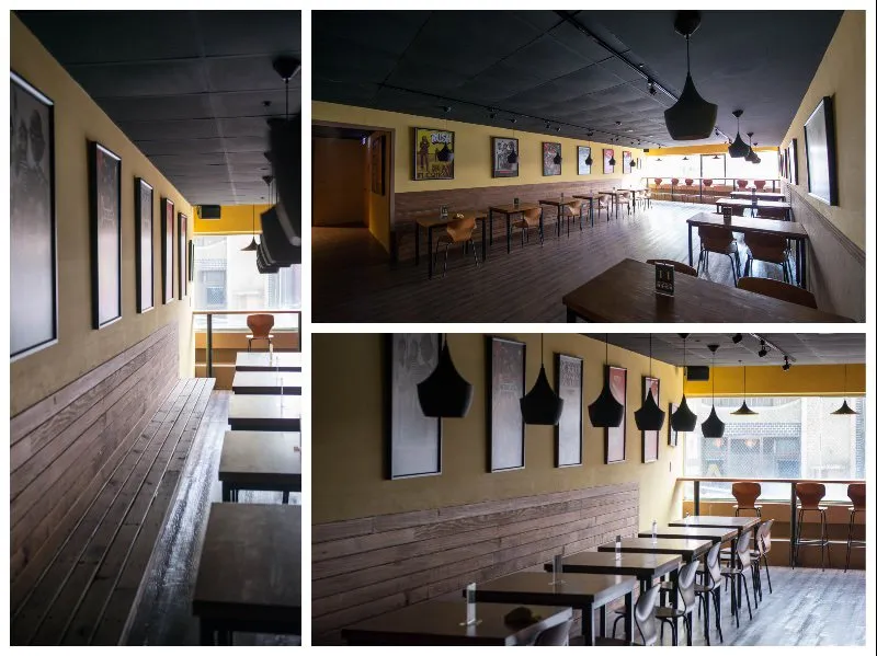 以黃色為基底,略帶美式風格的裝潢,配合木質桌椅,舒適又溫暖