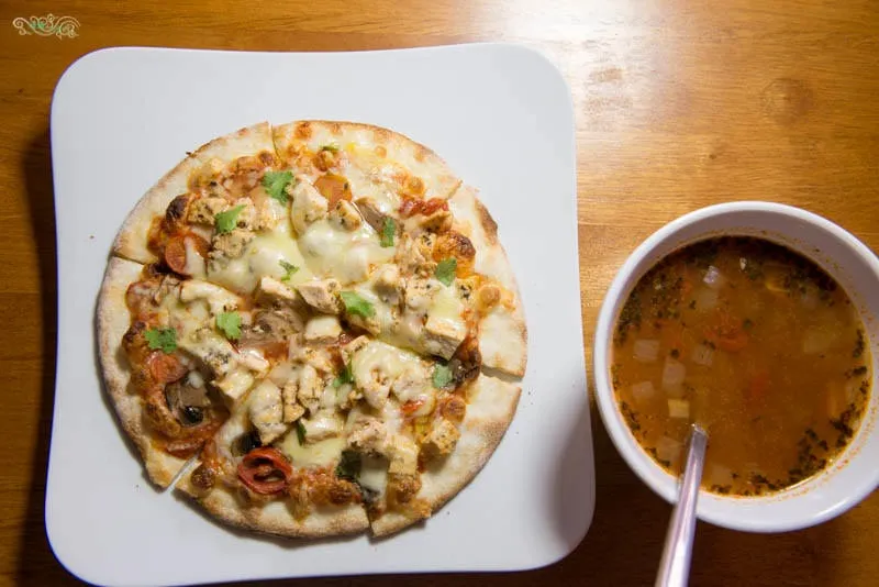 馬芝拉起司與香菜交相刺激嗅覺,將披薩帶入厚實飽滿的滋味