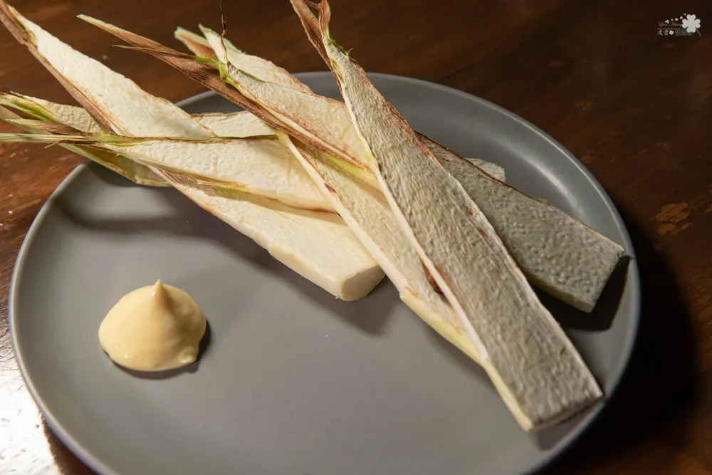 凌雲對於蔬菜類的燒烤,一直不太在行,常常都烤焦,但柒日卻處理得很好,廢話人家是出來開店的~筊白筍素有美人腿之稱,纖維含量很豐富,不用調味單吃就很優了,輕甜好滋味,搭配美奶滋提一下味也不錯,重點是他可以均衡一下口中過多肉食的味道。