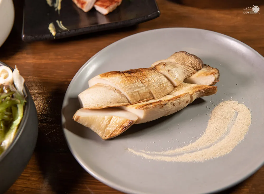 再一次驗證柒日松山的燒烤能力一流,一到嘴邊淡淡的杏仁香味撲鼻而來,吃起來肥嫩可口,沾點芥末椒鹽更能提出杏鮑菇的甜味。