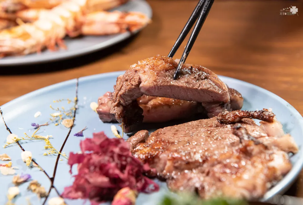 精美的擺盤令人眼睛為之一亮,鮮嫩多汁的肉質,搭配豐富細膩的大理石油花,讓人吃得欲罷不能,當眾人還在乾杯來乾杯去的時候,這盤已被凌雲嗑掉一半了說~哈。