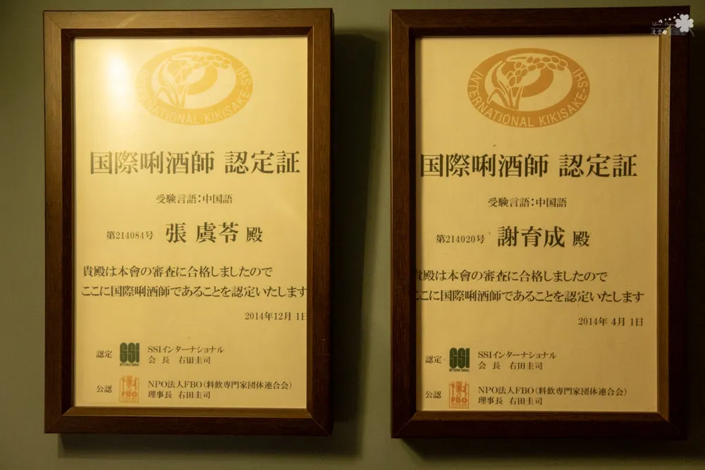 店內的國際唎酒師認定證,不論是挑酒或配酒,都能給予最合適的協助與安排。