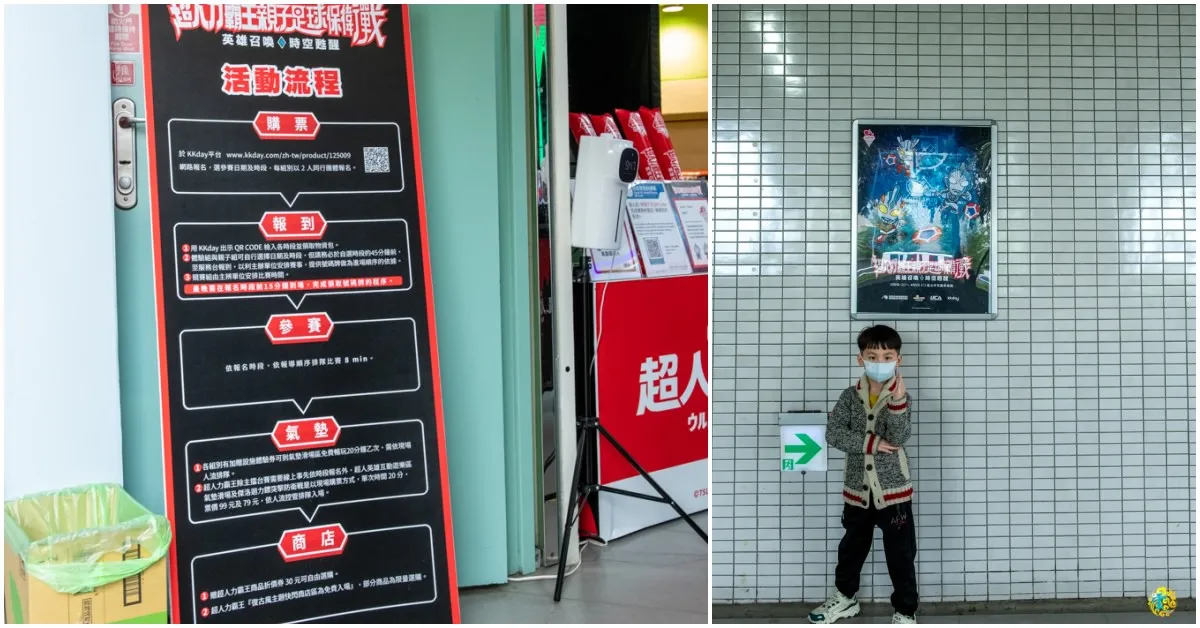 購票:透過『KKday獨家:59折優惠』選擇日期與時間,每組別以2人團體報名。 報到:於現場出示QR Code報到領取物資包,請提早報到以利熱身。 參賽:依據報名時段,出賽8分鐘。 氣墊:賽後可至一旁的氣墊滑場區暢玩20分鐘。 商店:最後憑卷去商店領取超人力霸王造型雞蛋糕,也可在商店內選購喜愛的商品,部分商品為限量選購喔。