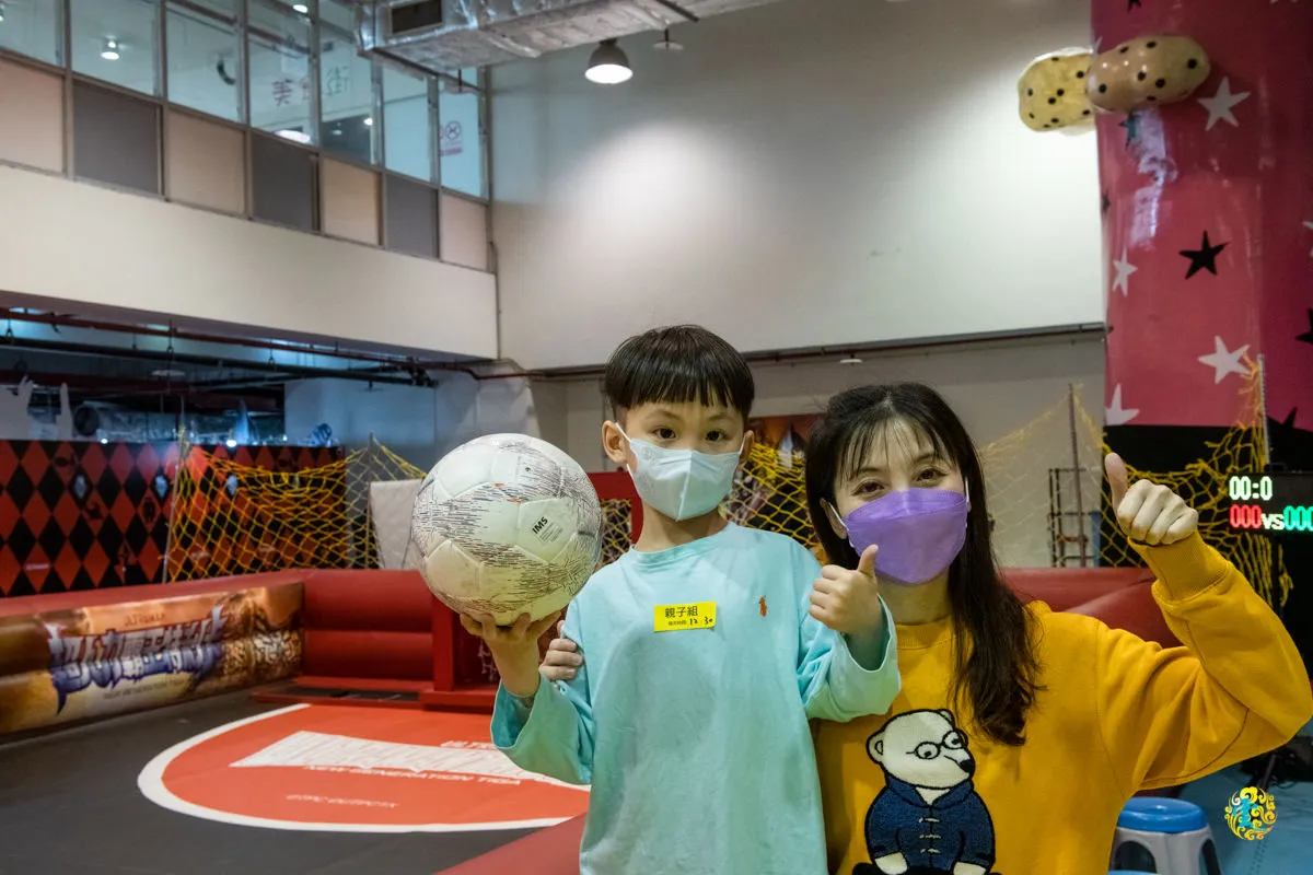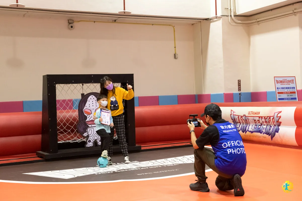 總共有3種賽組:體驗賽組、合作賽組與擂台賽組,各賽組詳情請見KKDay超人力霸王親子足球保衛戰活動套票。女王與小凌雲這次報名合作賽組,體驗賽制是親子2人體驗組隊,由一位家長與一位孩童(適用4-12歲),比賽時間為8分鐘。