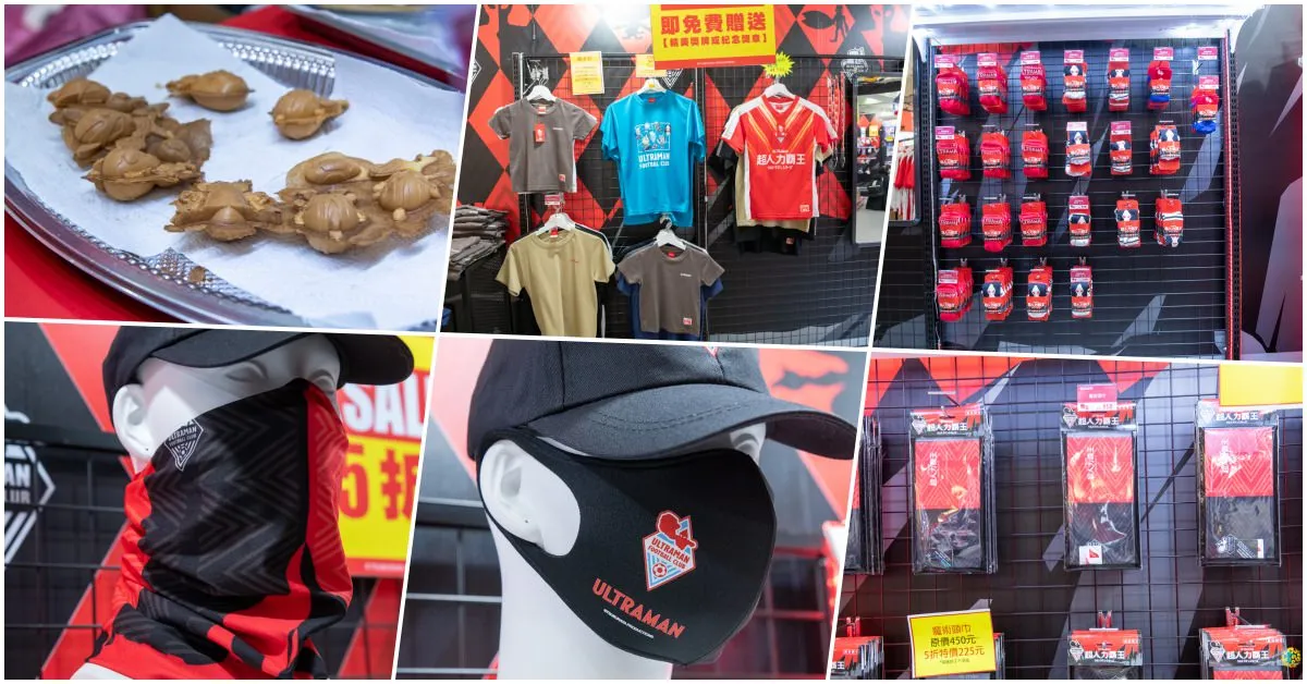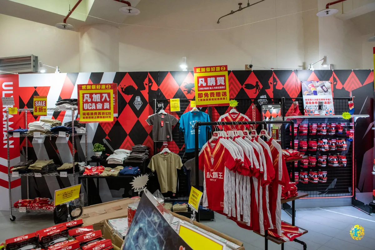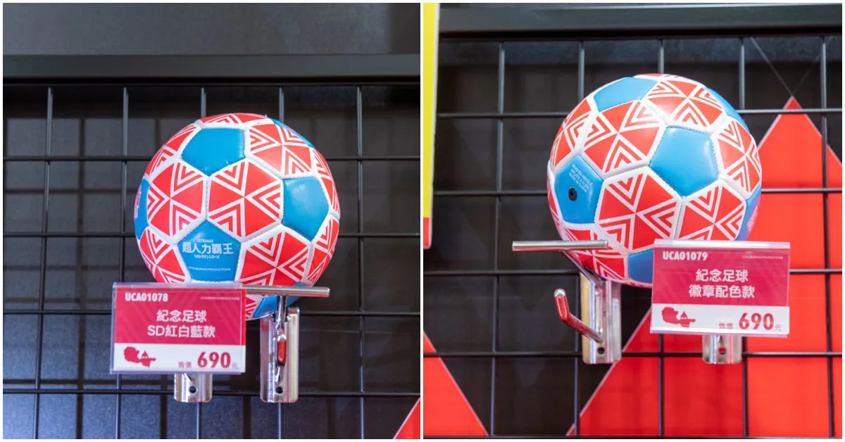 周邊商品主題取自超人力霸王代表的『MY HOMETOWN HEROS』精神,藉由復古風味的剪影設計,傳遞『家庭』與『團結』的核心價值。復古風主題快閃商店區裡販售各式各樣超人力霸王系列商品,當中不少足球聯名紀念品,有些還是限量的喔,要搶要快。其中聯名款足球衫,還可以客製化名字和號碼喔,搭配兩種設計的限量版紀念足球,誰還能比你帥啊?