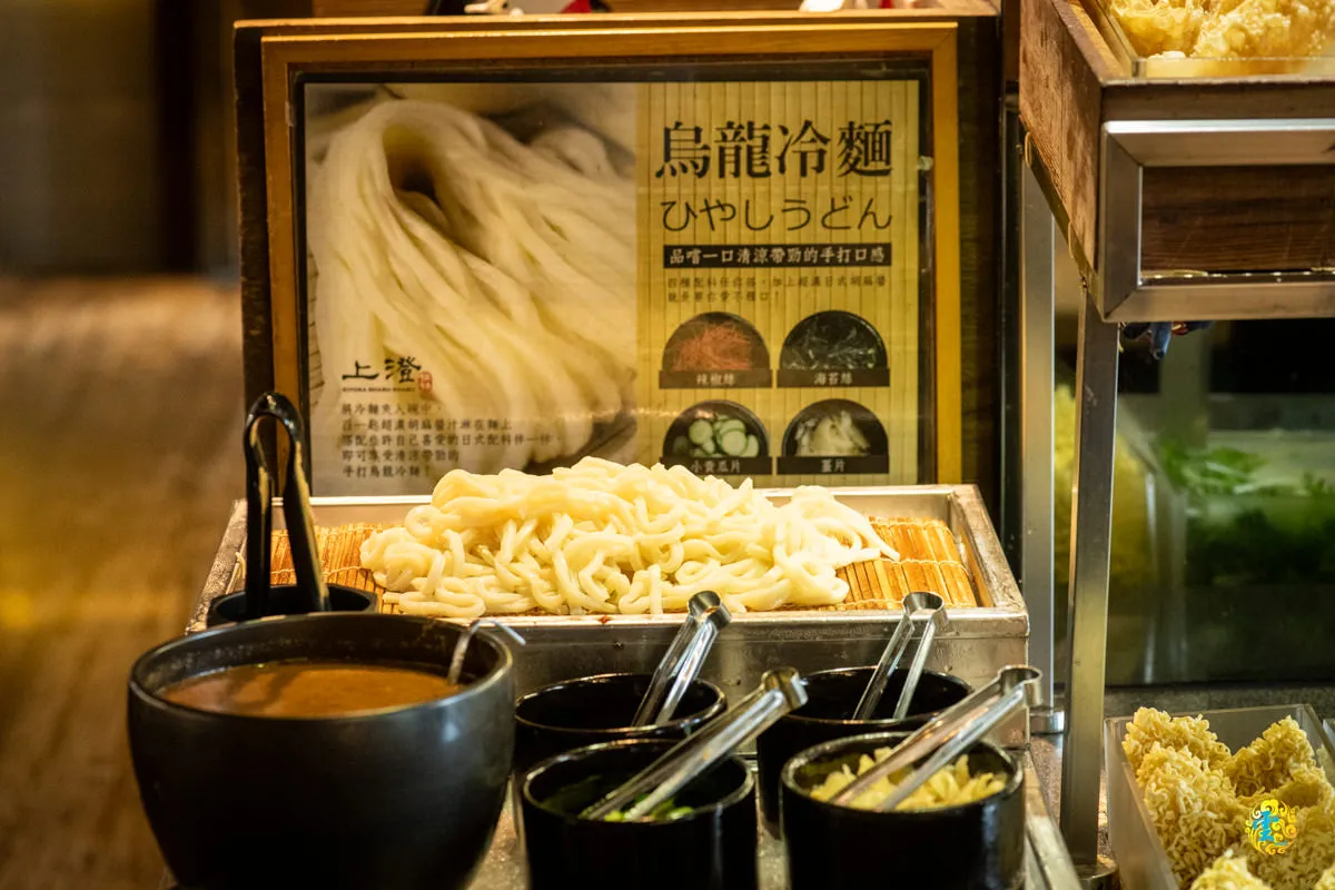 自助吧中的烏龍冷麵是有口皆碑的美食,全素食者也可食用,搭配烏龍麵醬,冷爽的麵條與清爽的醬汁交織在舌尖上,在口中爆發出豐富的層次與風味,再依照個人喜好選擇配料,吃起來Q彈爽口。