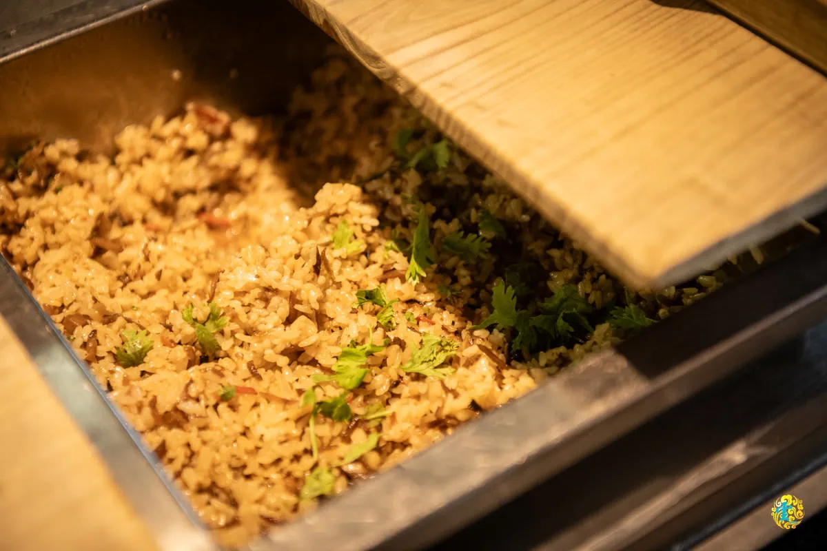 上澄提供3種風味飯,不定期更換品項,今天推出的是牛蒡風味飯。牛蒡風味飯瀰漫著淡雅的香氣,每一口飯粒都融入了牛蒡的獨特風味。咬上一口,香糯的飯粒在口中散發出豐富的口感與風味,讓人為之驚艷。