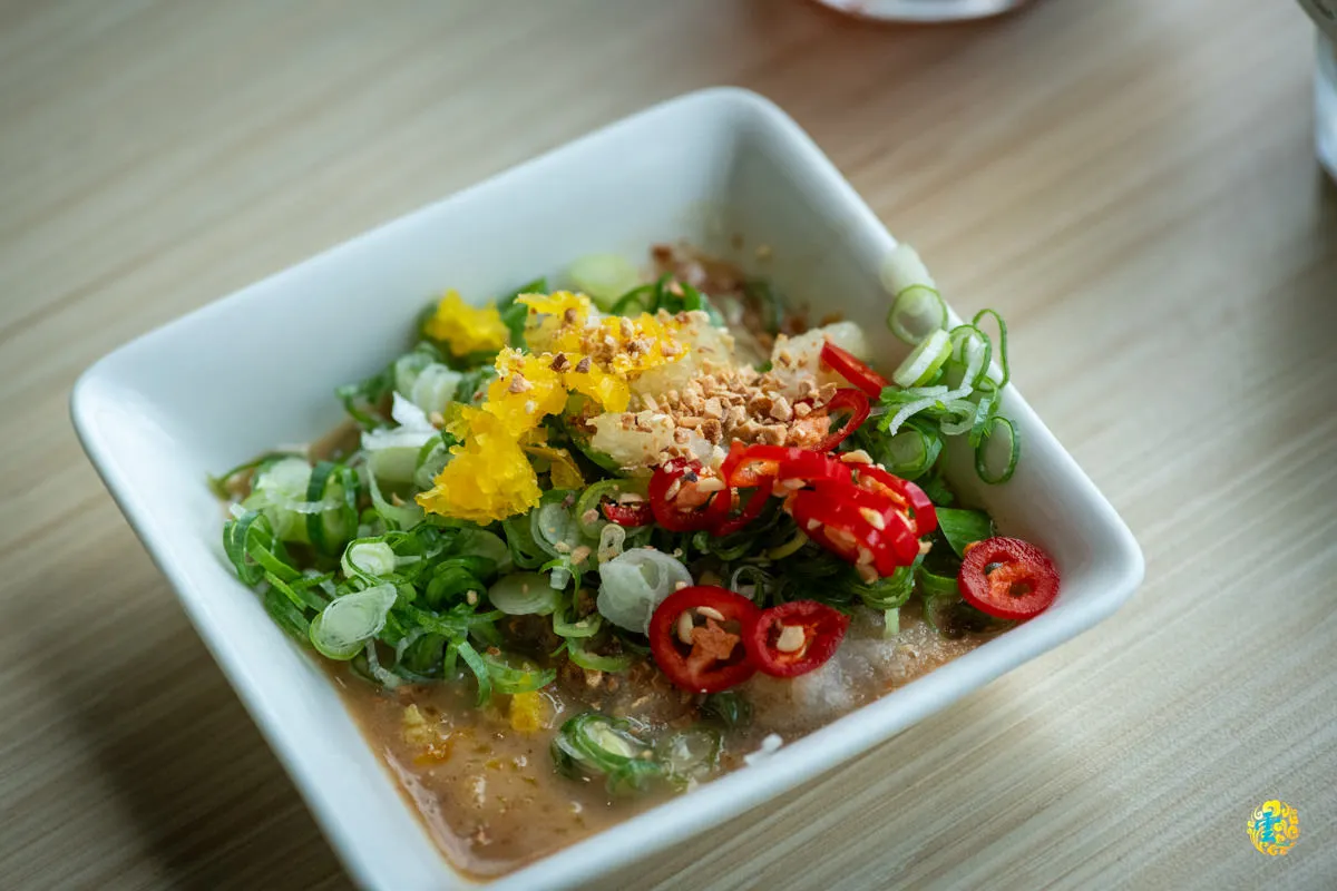 如果喜歡吃辣,可以直接將辣椒碎末加入醬油中,輕輕攪拌後就可以好好享受那銷魂的辣度,小心一吃上癮,愛不釋口!除了這種招牌吃法,還可以試試留香吃法,只需加入胡麻醬和花生碎,就能熨貼挑惕的味蕾!