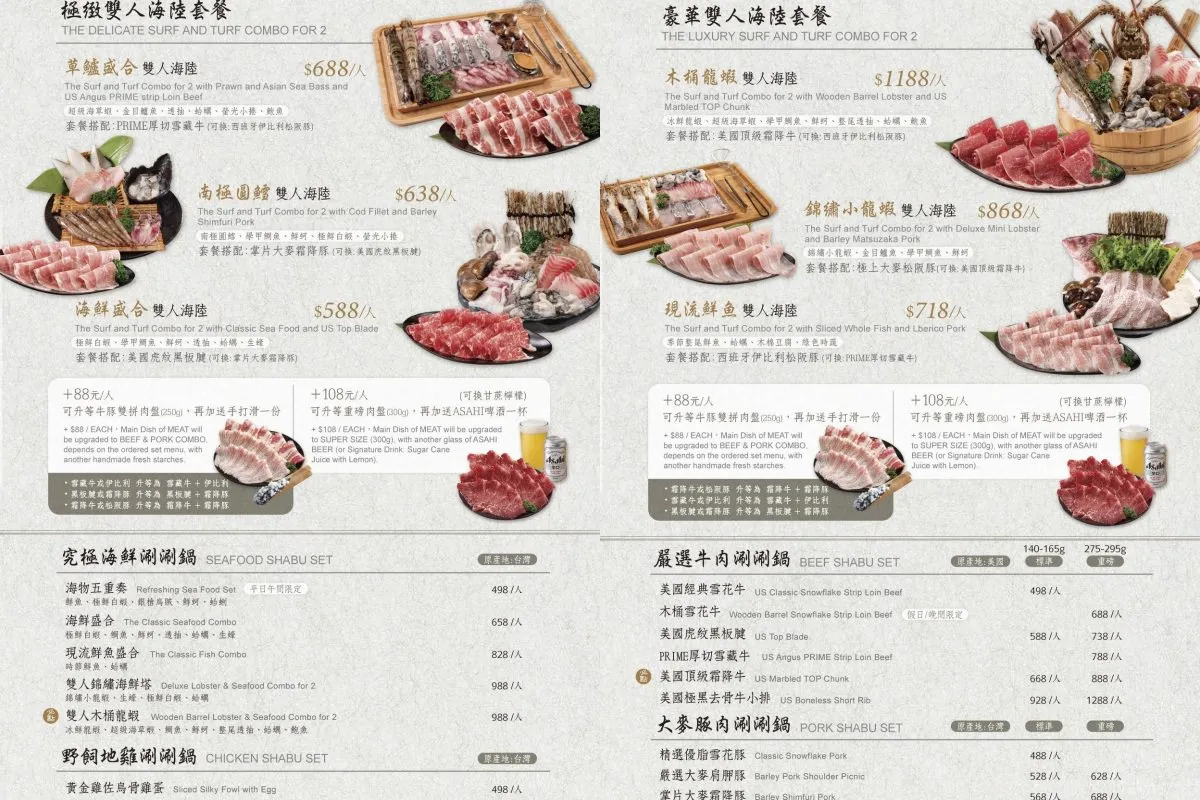 1. 火鍋主餐:可以從多種主餐選擇,包括豬肉、牛肉、雞肉、海鮮等,每種肉品都經過精挑細選,確保鮮嫩多汁,帶來絕佳的口感。