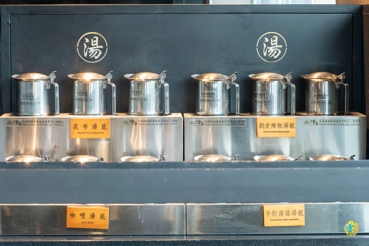 當踏進上澄鍋物的用餐環境時,一股濃郁的湯底香氣迎面而來,彷彿帶領我們進入了一個天然、簡單又美味的用餐體驗。湯底是上澄鍋物的亮點之一,他們提供四種不同的湯底提供選擇,有剝皮辣椒湯底、牛肝菌菇湯底、昆布湯底和咖哩湯底。