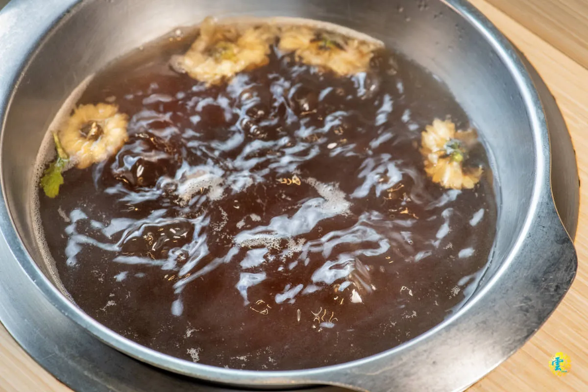 牛肝菌菇作為大自然賜予的禮物,不僅具有獨特的風味,還被廣泛視為養生食材。在這道湯底中,上澄鍋物巧妙地融合了牛肝菌菇和菊花,營造出令人愉悅的香氣。牛肝菌菇的豐富風味在湯底中得到充分展現,它散發出濃郁的香氣,帶來獨特的口感和層次。這種菇類富含營養價值,被認為對健康有益,尤其受到女性的喜愛。而加入菊花更進一步提升了湯底的香氣,帶來一種愉悅和放鬆的感覺。