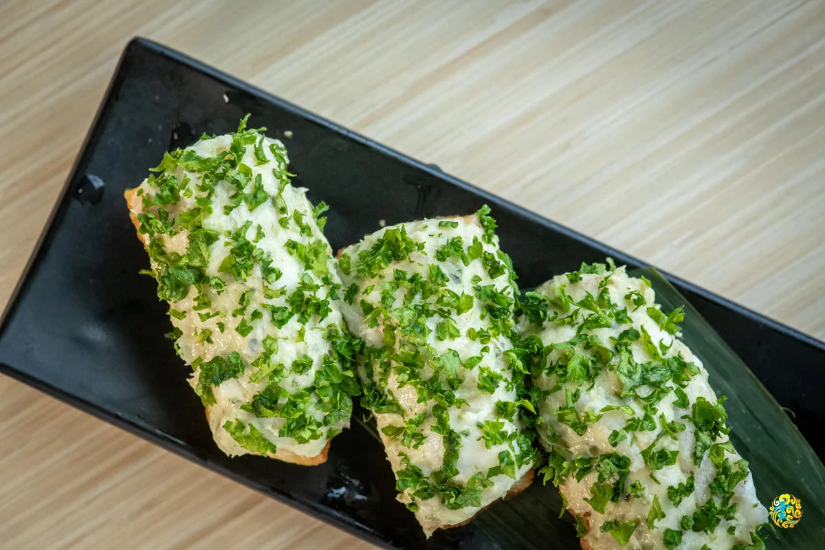 圖|撒上巴西里的葉末,為這道美食增添了更多的層次和芳香。 圖|巴西里的獨特香氣與九層塔花枝漿的味道相互融合,營造出一種令人難以抗拒的美味饗宴。