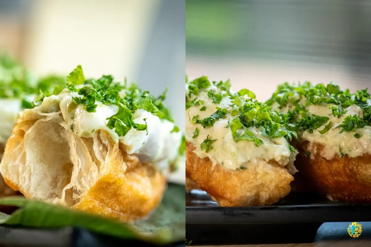 油條本身帶有酥脆的外層和蓬鬆的內部,而上澄鍋物賦予了他新的驚喜!舖滿混合九層塔與巴西里的花枝漿,讓油條在口中爆發出豐富的香氣和鮮美的海鮮風味。這樣的搭配創造出一種獨特的口感,不僅保留了傳統的風味,還融入了新鮮的海鮮元素和新鮮的香草風味,給人一種獨特而魂牽夢縈的味覺回憶,不只女王為之驚艷,也讓凌雲印象深刻。
