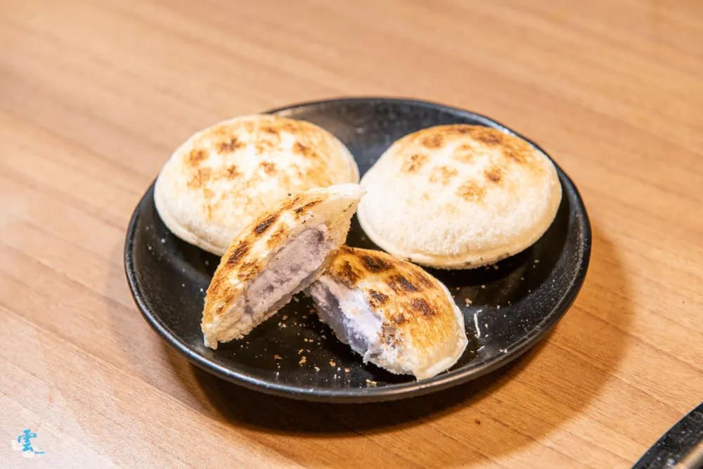 冰淇淋的內餡有芋頭、香草、巧克力與花生,口味隨機,一人一顆。吐司經過烘烤過後,變得酥脆香濃,內含綿滑的冰淇淋,冰與火交互的美味,好想再來一顆說。