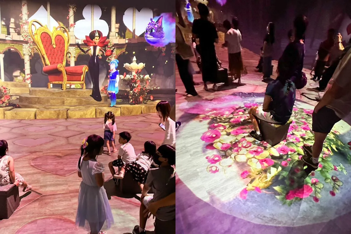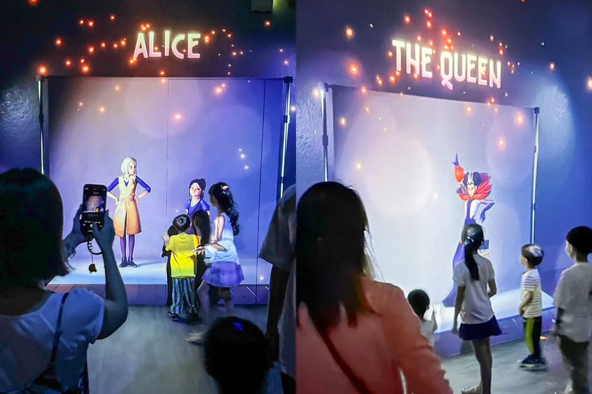 展演的背後是來自不同國家和文化的專業人才匯聚而成,讓這場展覽成為了一場融合多元化表現的藝術盛宴。這也是全球首次呈現中/英文版本的展演,為觀眾提供了獨特的語言體驗。無論你來自哪個角落,這裡都是你溝通、交流的夢幻樂園。你聽說過愛麗絲夢遊仙境嗎?這次展覽就帶你穿越時空,跟著愛麗絲一起進入夢境冒險!這裡的展示真是神奇,讓你在縮小和放大的魔法樹間徜徉,就像變小個子一樣!然後又進入了紅心皇后的花園,看到了綻放的花兒和奇怪的生物。還參加了悶熱的茶會,瘋帽客和其他奇特角色讓我驚奇連連,度過了不可思議的時光!