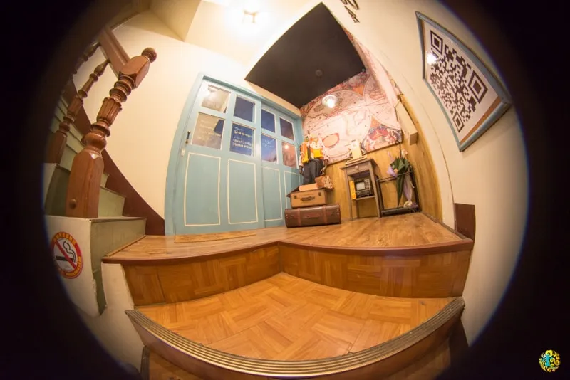 漫步上二樓,舊舊的皮箱、古老的電視以及復古的門扉
