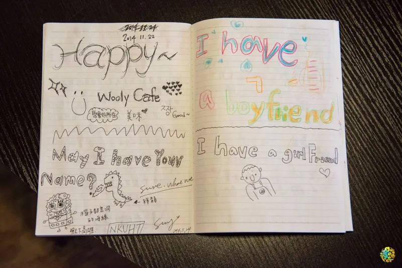 隨意翻翻幾頁,很多人都留下俏皮的圖案與文字XD