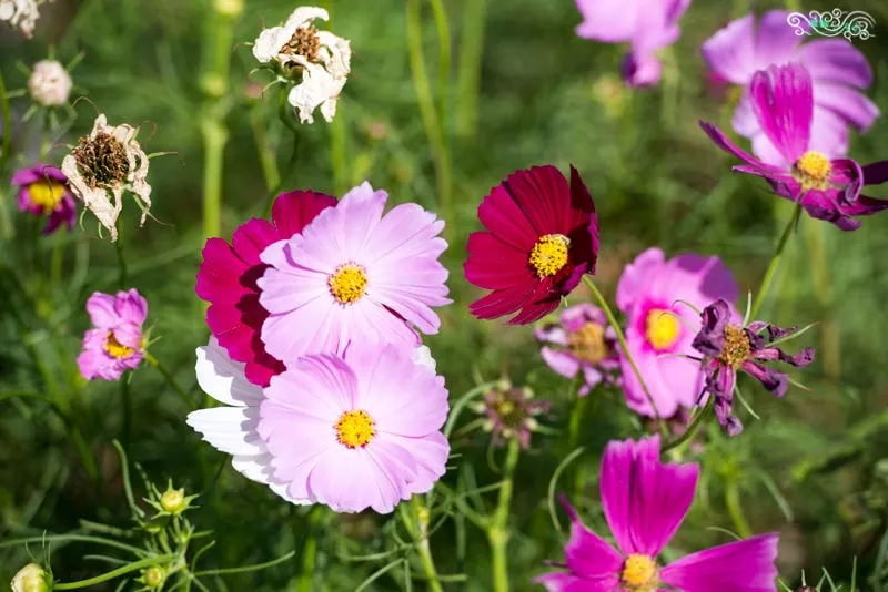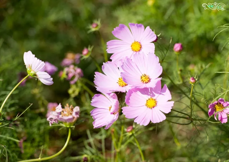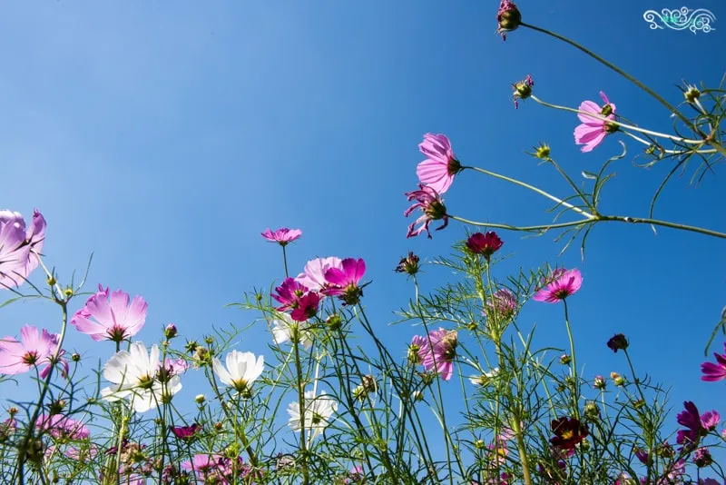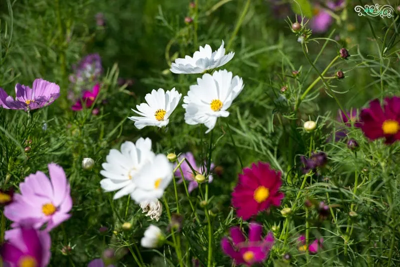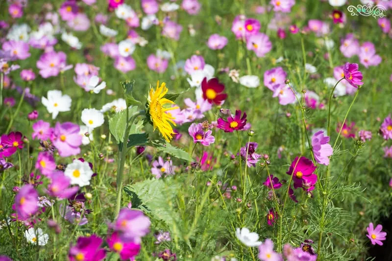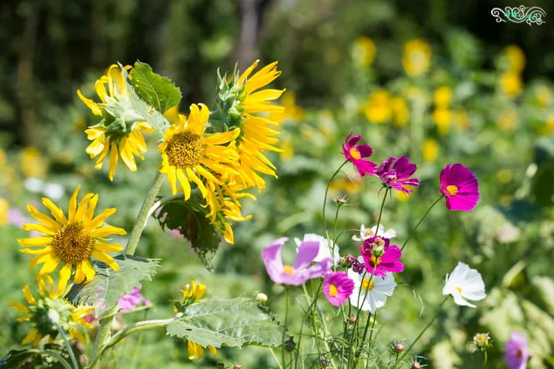 一旁是向日葵,一邊是大波斯菊