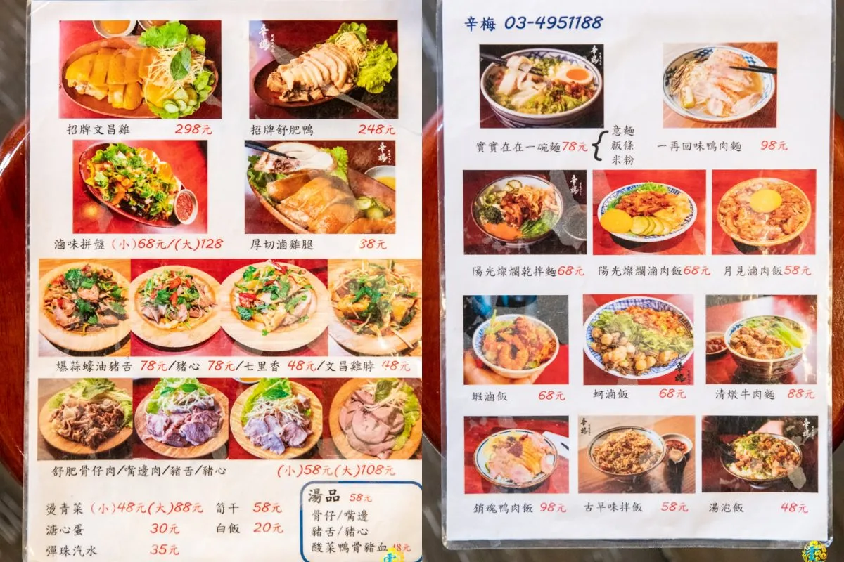位於平鎮環南路上的辛梅有著極佳的三角窗位置,白底黑字的斗大招牌在行道樹的遮掩下,識別度依然很高。店門口上方醒目的美食照,讓你走過都很難錯過。