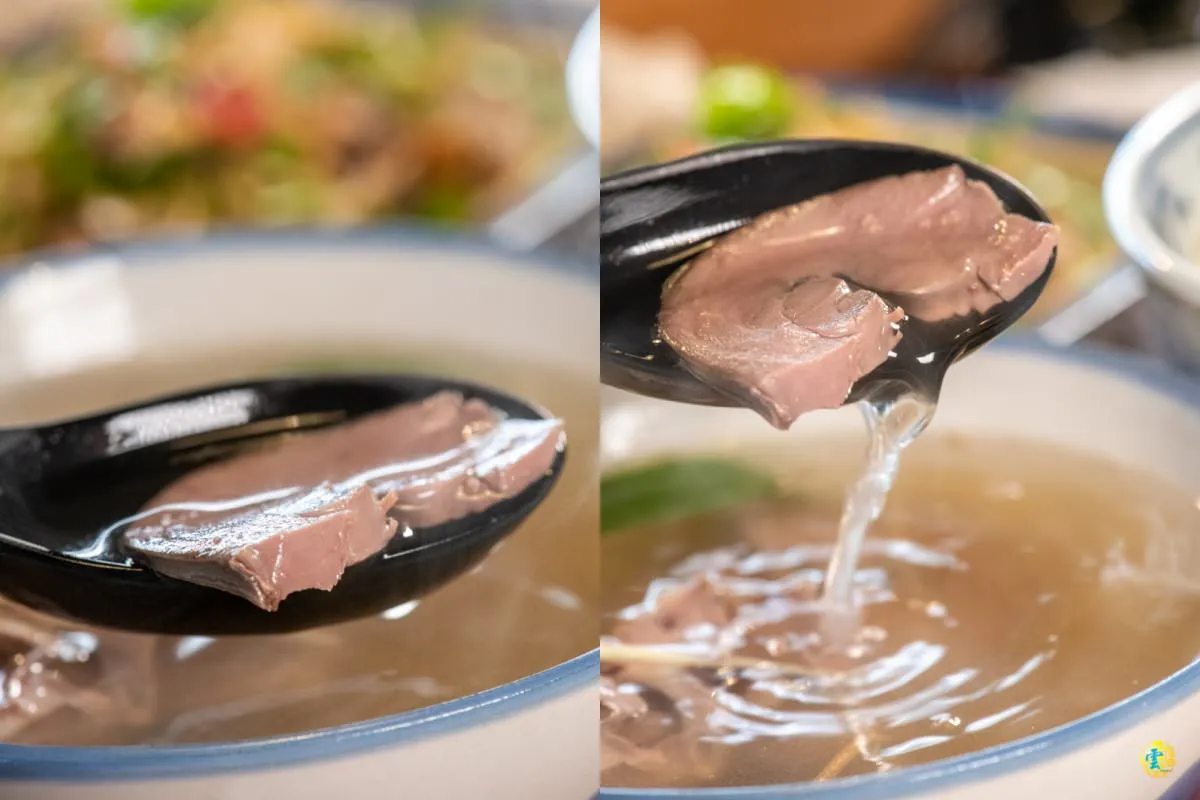 豬心湯的口感較為清淡,豬心肉的味道也不會太重,對於喜歡清淡口味的人來說,豬心湯是一種不錯的湯品選擇。表面紋路很特別的豬心,汆燙的熟度剛剛好,沒有腥味,細緻柔軟的口感中帶著一絲絲脆度,風味獨特。