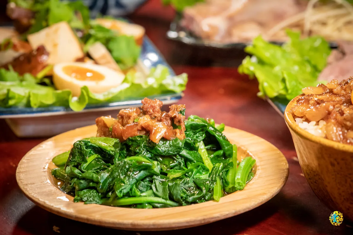 隨著時令不定期更換品相的燙青菜,基本上是吃麵食時的必點選項,每日青菜品項會貼在點餐機上。汆燙後的青菜柔軟而嫩滑還帶點但點脆度,加點醬汁調味,增添更豐富的口感和層次感。青菜可以選擇單純清燙或者加上醬汁。