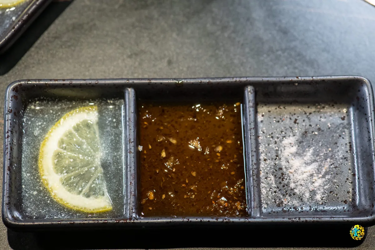 圖|店家提供的醬料,有檸檬汁、店家特製的水果醬以及玫瑰鹽。