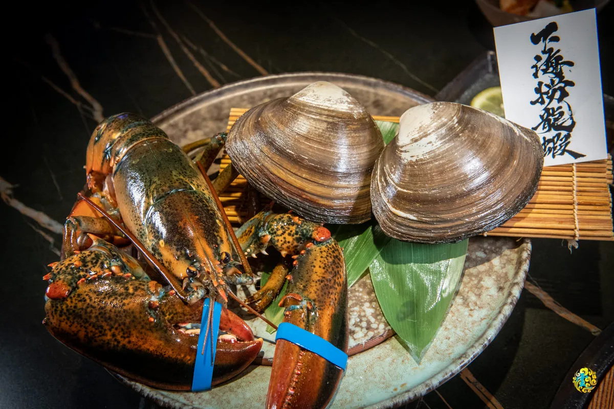 每天都會提供當日新鮮的漁獲與肉品讓顧客做食材加點,今天提供的海鮮是加拿大波士頓龍蝦與日本活體北寄貝,肉品則是紐約客、牛舌、橫隔膜以及鉛筆肉等皆可加點,店內提供的實際加點品項請洽現場服務人員。