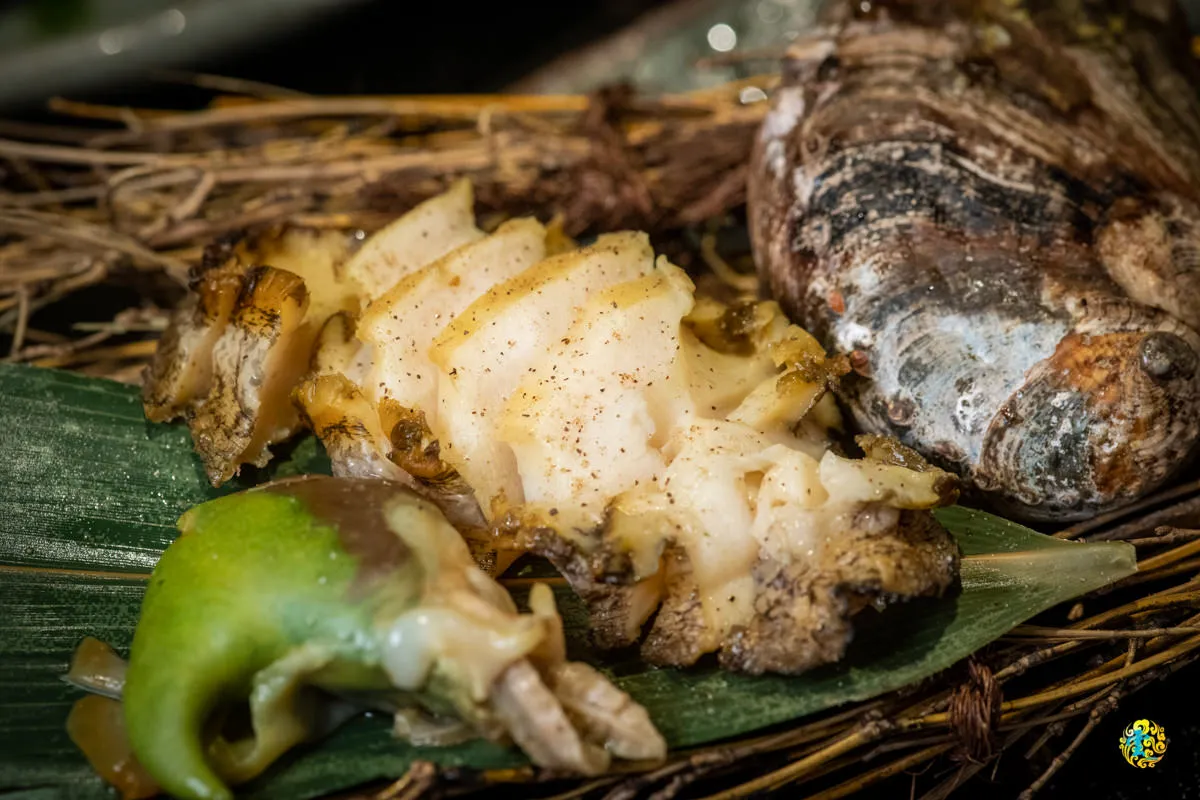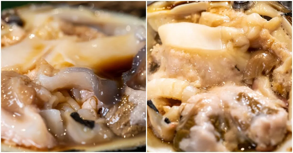圖|活體上桌的南非大鮑魚,還可以看到他在動說。
