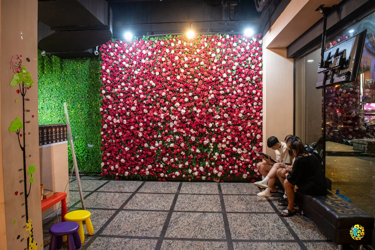 圖|候位區旁的花牆,是不少顧客留影的夯點。
