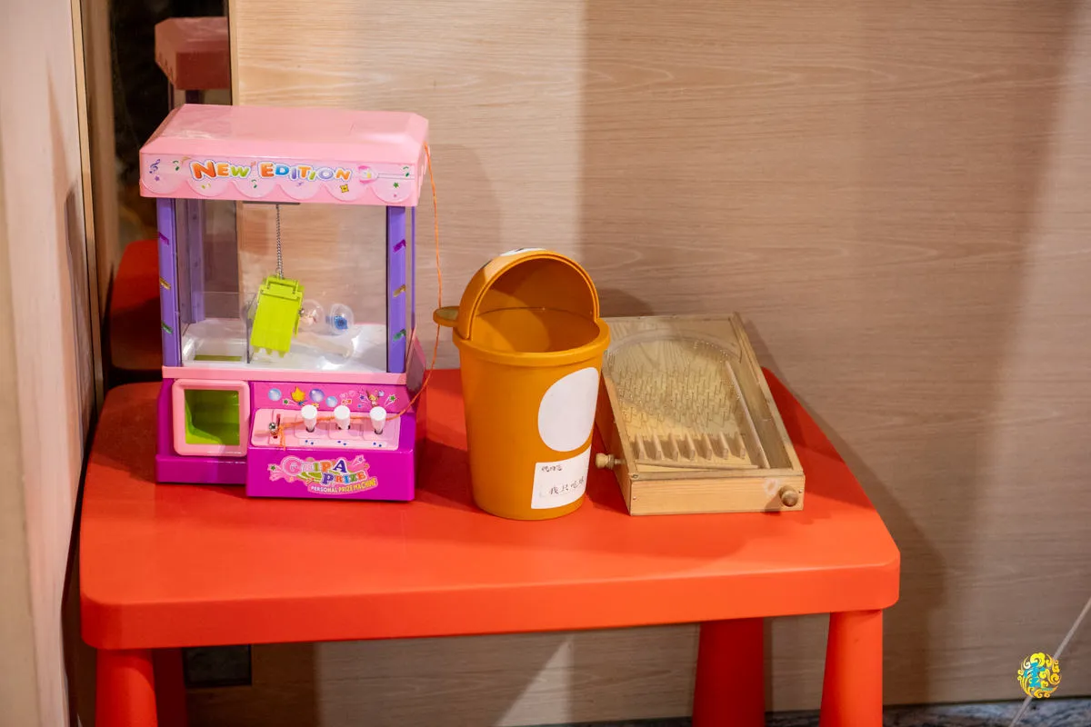 踏入店門,就會發現右手邊靠牆有一片繽紛的美美花牆裝置,簡直是攝影打卡的聖地!而旁邊竟然還擺著小巧的抓娃娃扭蛋區,還有彈珠台,真是娛樂無極限!這裡可不只是一個等候帶位的地方,而是一個時光消磨的好去處。
