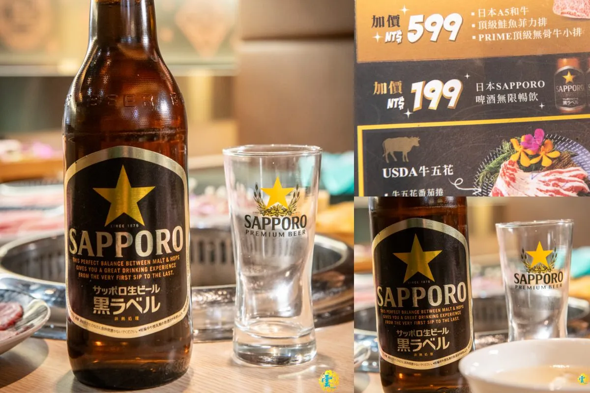 在燒肉道,有三種選擇可滿足挑惕的味蕾:$589套餐供應30種食材、$789套餐擁有50種選擇,以及$989套餐提供70種食材,而再加價$599,就能升級享受A5和牛、頂級鮭魚菲力排、PRIME頂級無骨牛小排的豪華享受!還有$199的選項,可以無限暢飲日本SAPPORO啤酒!要注意的是,假日只能選擇$789以上的價位。
