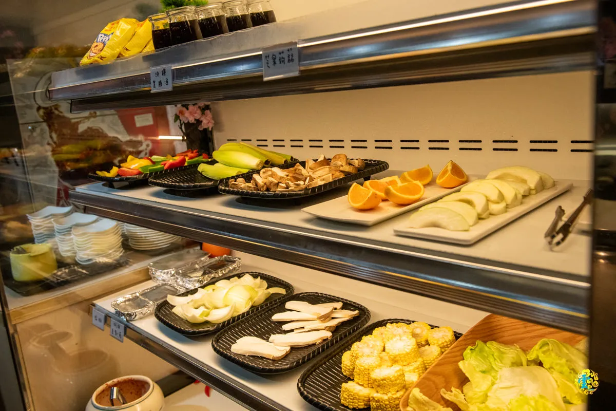 蔬菜水果自助吧,彷彿是大自然的聚會,提供新鮮的蔬菜和水果,每個品項都會根據店員的巡視而不斷補充。你會看到不少顧客夾菜、挑選水果,這片區域始終保持著充滿生氣的狀態,這一切都歸功於辛勤的店員們。