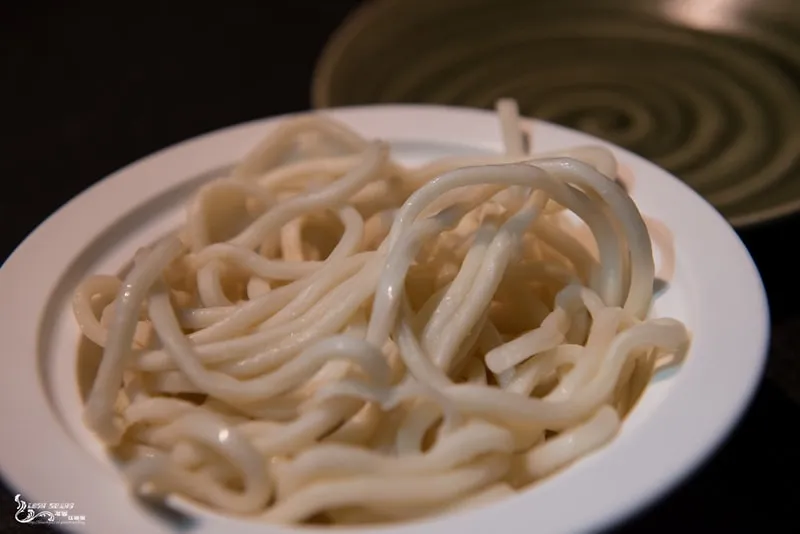 烏龍麵入鍋後,搭配養心殿的芝麻醬,真的只有一口接一口啊