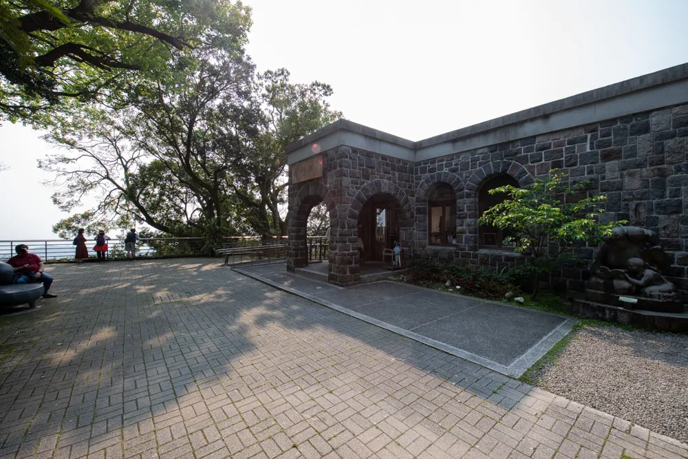 草山行館如同收納史蹟的記憶寶盒,雖然在2007年不幸遭逢祝融之災,在重建開放後的現行樣貌,依舊不掩其飄逸山林的藝文風華。門前的偌大廣場是不少旅人駐足休憩的好地方,在這裡可以遠眺關渡平原、社子島、觀音山等自然美景,廣場上兩棵年齡逾百的相思樹和楓香,不只賞心悅目還帶好良好的庇蔭遮陽功效。