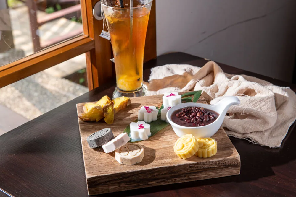 梅花造型的雪花糕,添加椰奶調味,滑嫩爽口縈繞味覺。綠豆糕入口一抿即化,鬆軟綿密的甜香,觸動著舌尖的末梢神經。八角糕共有芝麻、花生與梅子三種口味,香濃綿密略為鬆軟,在嘴裡慢慢化開的清甜,在舌尖留下美好雋永的餘韻。美齡懷舊午茶是一道會讓人笑彎了眼的幸福甜點。