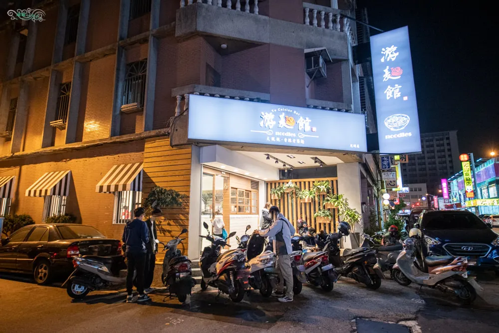 這一夜凌雲來到游麵館竹北光明店,店面位在熱鬧商圈的轉角處,週邊不少路邊汽車停車格,不遠處也有幾個停車場,開車前來不只交通方便,停車也不是問題,如果是騎車前來可以直接停放在店家門口。當晚不少內用外帶的顧客,看店員忙進忙出的,生意相當好。