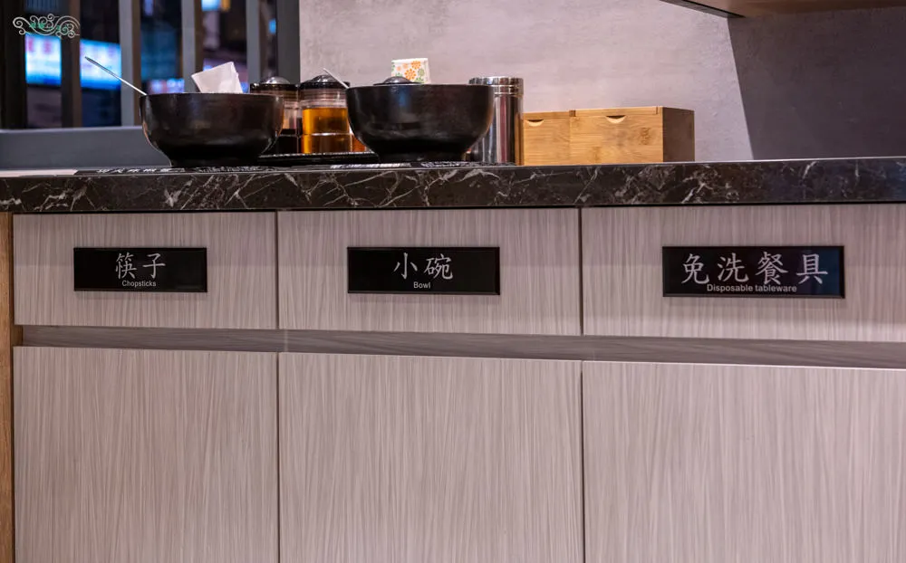 游麵館的菜單簡單明瞭,以乾麵、湯麵、湯與其他來作分類,很容易就可以找到自己想要的餐點組合。在這裡沒有大小碗的分別,直接在品項後方填上數量,在寫好桌號交給櫃台即可。在等候上菜的期間,凌雲發現醬料區那邊總是有不少顧客駐足,應該是有什麼好料的吧。