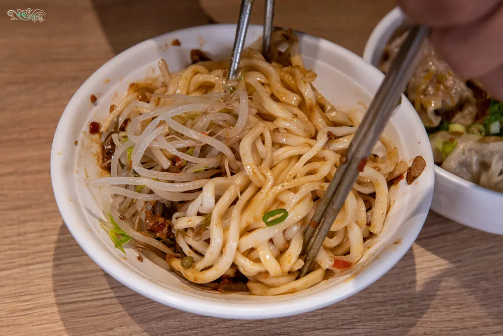 這是店家的招牌菜之一,以特製的香辣肉醬為主角,不只香氣十足更豐富了色彩,搭配豆芽菜與蔥花,就是一碗美味的香辣老饕麵,如果在加上一些小魚干,就成了另一道招牌麵食-丁香老饕麵。將麵、香辣肉醬與配料充分的均勻攪拌後,香氣更加明顯,帶著一點點柴魚味的香辣肉醬,味道非常濃厚卻不會死鹹,吸飽醬料的麵條Q彈帶勁,特製香辣肉醬的香氣盈滿口腔久久不散,在快入喉時,麻的感覺才慢慢湧現, 輕微的辣度帶著一點點後勁,相當過癮又有層次的味覺體驗。