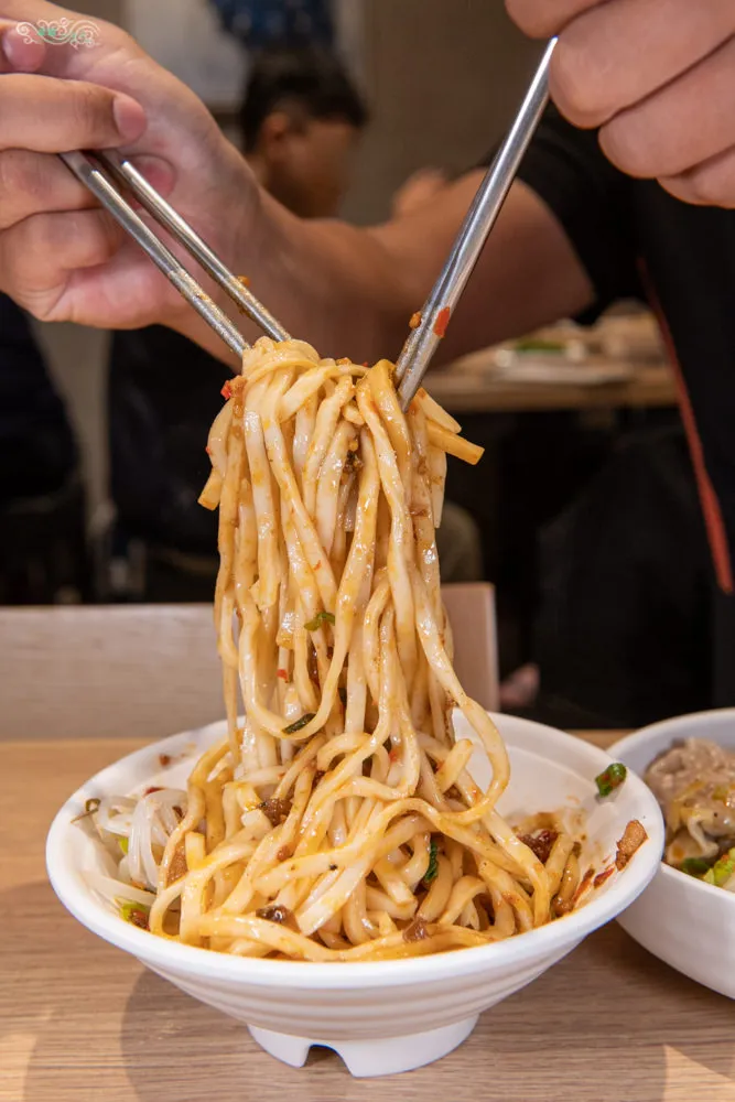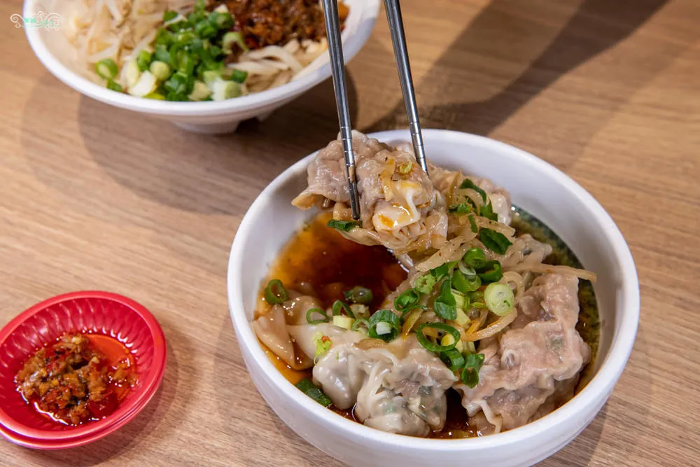 包含菜肉、鮮肉與鮮蝦大餛飩的綜合紅油炒手,讓你一次吃到三種不同的大餛飩,菜肉餛飩混著等比例的蔥花,降低蔥花的內餡比例即是鮮肉餛飩,包含蝦仁與肉餡的就是鮮蝦餛飩。不同於以往吃到的紅油炒手相比,辣度相當輕微,感受更明顯得是醋味,算是十分新奇的體驗,加上店家特製的功夫辣椒醬之後,風味更佳。