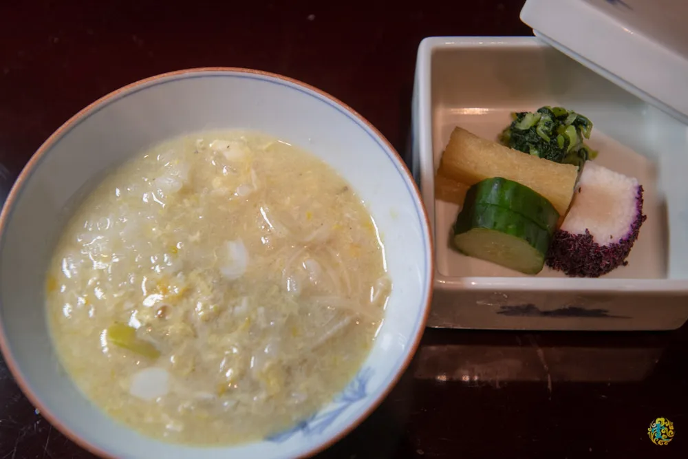 用剛剛的湯頭加了蛋之後,就成了這碗美味的日式雜炊粥,配上一些醃菜,更為下飯。